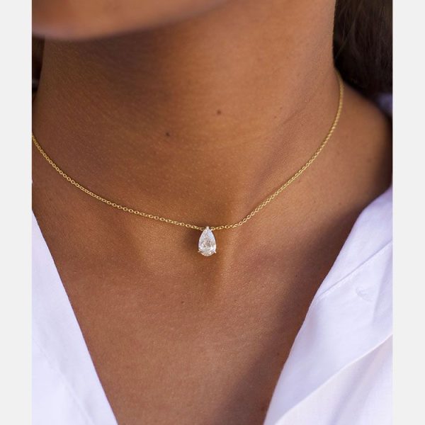 Блестящий выращенный бриллиант грушевидной огранки весом 1 карат на регулируемой золотой цепочке. Независимо от того, носите ли вы эот кулон отдельно или в сочетании с другими украшениями, он станет великолепным дополнением к вашей коллекции украшений.
